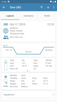 • Manage your equipment, trips, buddies and dive shops