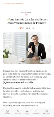 Pourquoi tester cette application ? Intranet Inside est une solution sur-mesure qui s’adapte aux spécificités de chaque organisation. Cette version de démonstration vous permet de découvrir toutes les fonctionnalités avant de personnaliser votre propre intranet, et d’envisager l'ajout d’une application mobile personnalisée pour vos collaborateurs.
