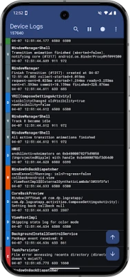 Logcat Reader makes it easy to view and save the device logs. The source code is available at github.com/darshanparajuli/LogcatReader.