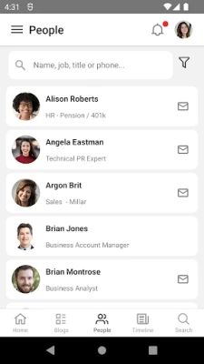 Using Interact Mobile’s Enterprise Search, you can instantly access all your vital business documents and storage: giving you the information you need, when you need it. You’ll also get access to your company People Directory on the move, with the ability to search colleagues and call or email directly from the app.