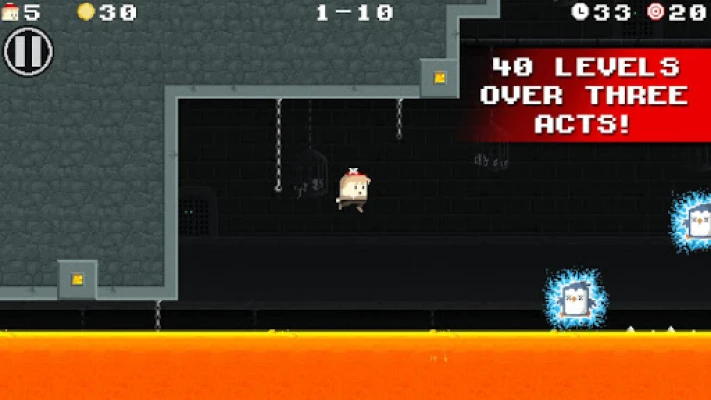 Features: • 40 levels of platforming fun over three acts! • Intuitive touch controls! • Boss battles! • Coins! • Secrets! • Hardness!