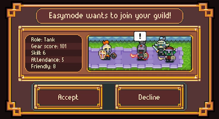 Some features: - Choose your character - Create / manage your guild members - Obtain legendary characters - Over 260 unique hand crafted characters! - Plan/run through unique dungeons - Angry hand crafted bosses - Loot (Simple gear score), ninjas, guild drama.. and more!