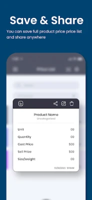 In addition, a product list gives you a picture of cost price and sale price of your products. You can quick overview the price of your products in a tap and maintain easily. You can store unlimited products and items in most efficient way and boost you sale and market your business.