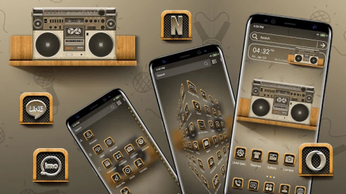 The Radio Cassette Player Launcher Themes is a cute theme for Android with cool vintage Radio wallpaper and incredibly imaginative custom app icons that will surely make your phone stand out. By downloading it today, personalise your phone! We made sure that all the Android devices are compatible with Radio Cassette Player Launcher Themes, the Launcher theme we've created for you, this is a cool theme and it fits on either handset or tablet.No dull backgrounds any longer! Cooler wallpapers with various effects can be found. We're providing 3D impact wallpaper at Radio Cassette Player Launcher. In Radio Cassette Player theme you can also complete change your lock screen into a different look. Why install a this theme for Android? Complete Change your phone look Customize app icons and change all of your phone's app icons! Download this Radio Cassette Player theme you get hd wallpaper
