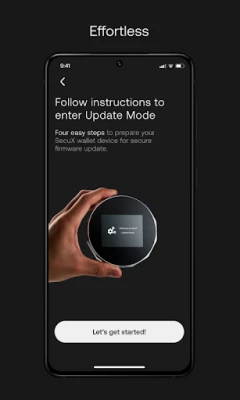 SecuX Firmware Update App provides a fast, safe and easy firmware update process via Bluetooth connection for SecuX V20, W20 and Nifty hardware wallets. The interactive step-by-step guide prepares users to follow instructions, and complete firmware update in just a few minutes.