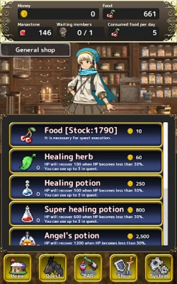 · Buy items from the shop! Many convenient items and services for sale.