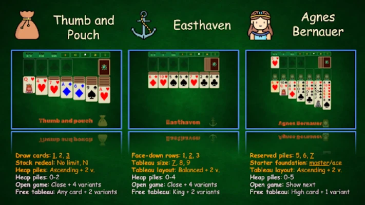 Yet Another Solitaire Game (YASG) includes the following solitaire games: